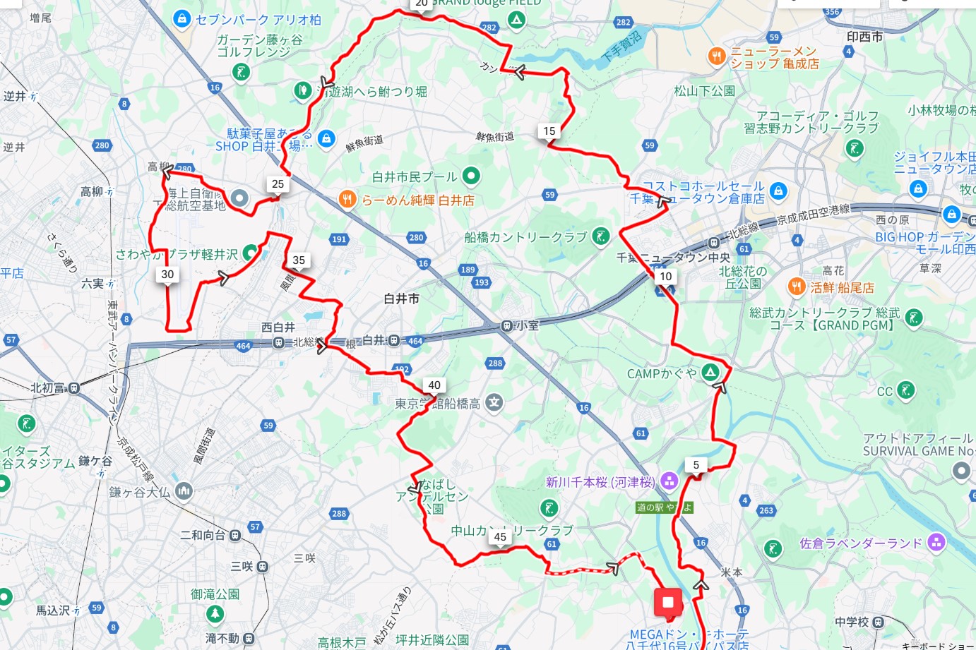 12/14(日)の日曜サイクリングは「Fコース 総武C.C.」を走ります。