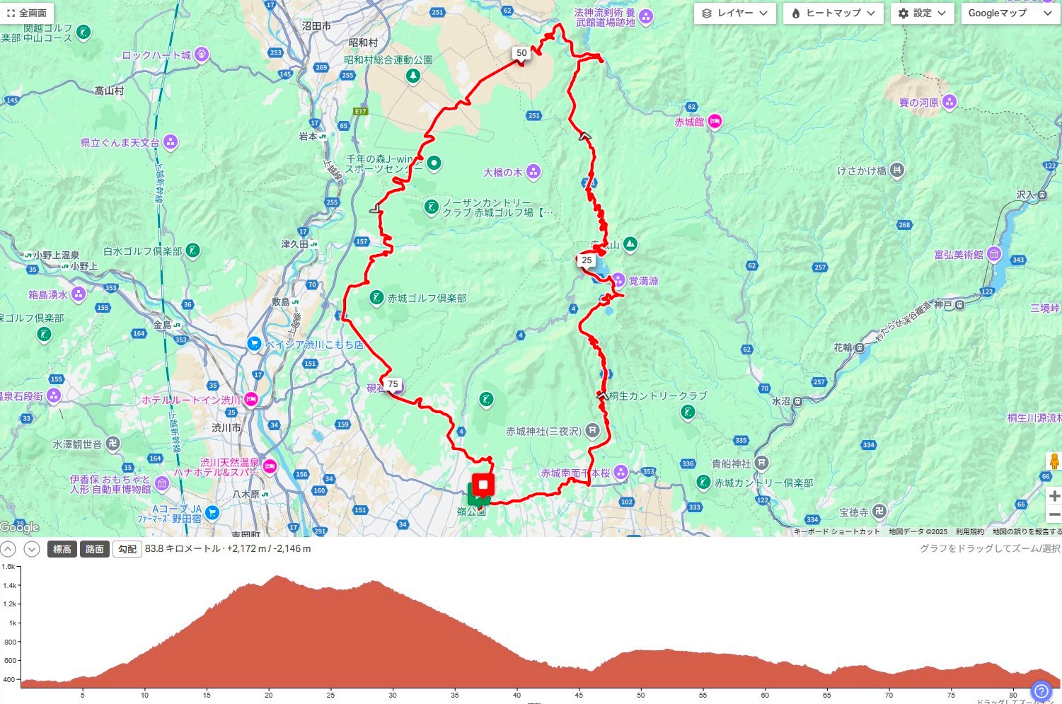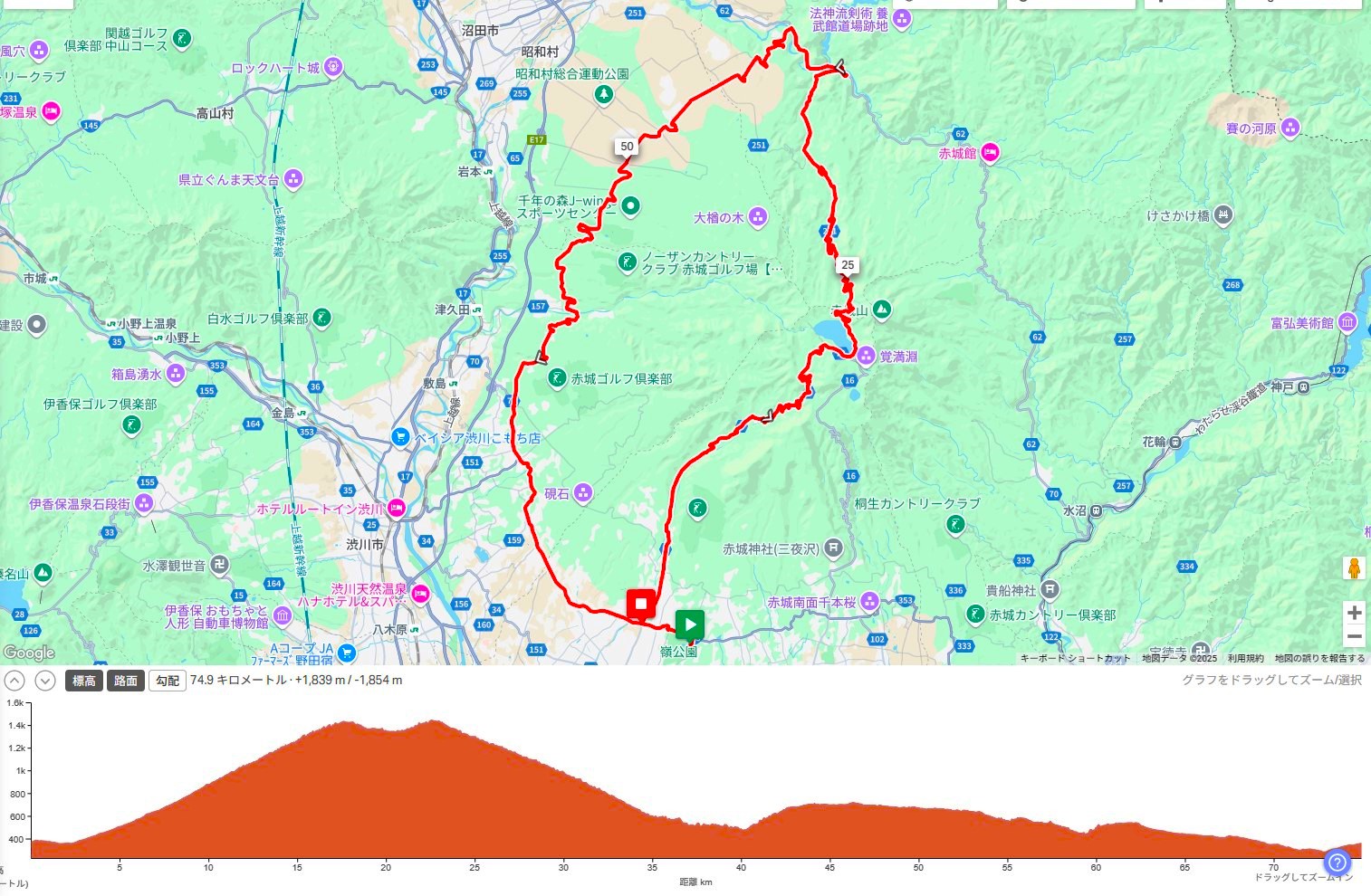 「常陸太田を起点に大子町を目的地に周回する約90km」というのは2班とも同じですが、登り難易度は二倍以上違います。