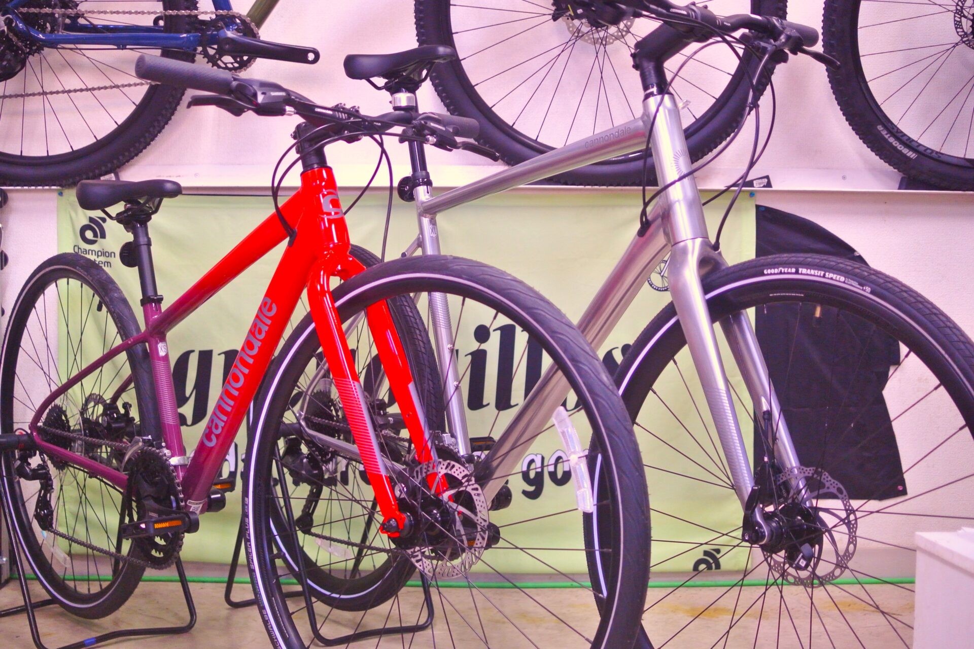 サイズも色もお値段も違いますが、どちらもキャノンデールのクロスバイク「Quick」シリーズです。