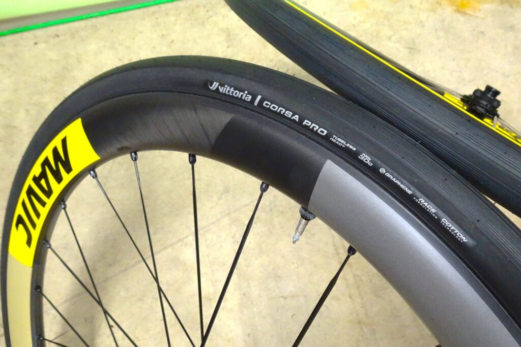 新調したMavicホイールに履かせるタイヤは「Vittoria/Corsa Pro」です。久し振りにチューブレスタイヤを使ってみようと思います。