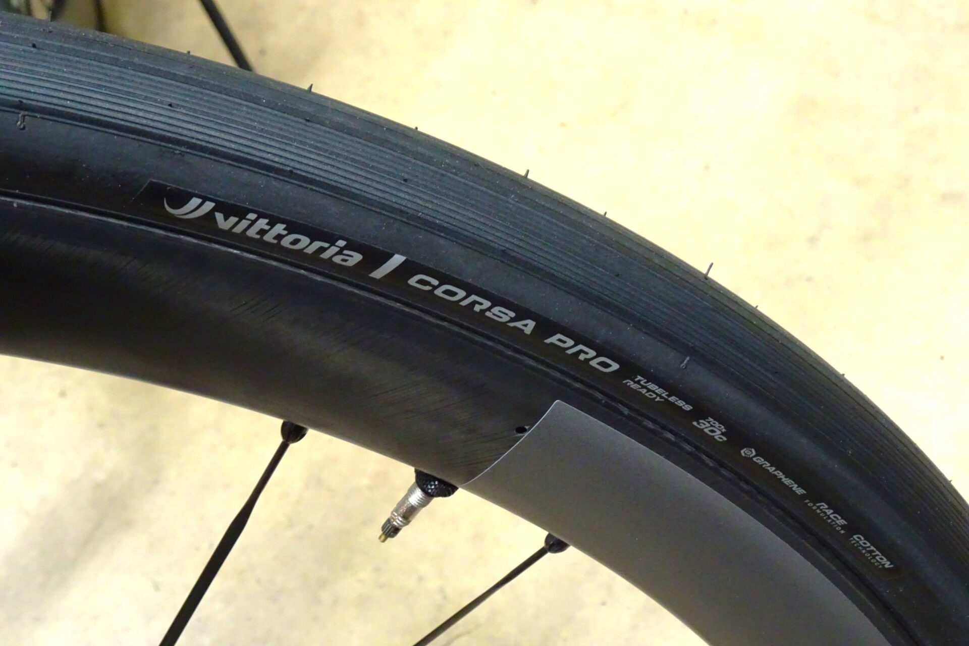 タイヤは「Vittoria/Corsa Pro」、チョイ太30c幅を選びました。