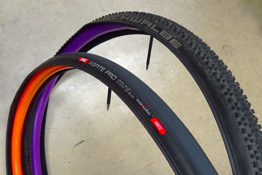 現在、私の乗っている自転車6台はロードバイク・MTBとも全てクリンチャーです。以前は積極的にチューブレスタイヤを使っていたのですが、一昨年、何故かパンクが頻発してチューブレスが嫌になっちゃったんです(チューブレスは出先でのパンク対応と帰宅してからの後処理がちょっと面倒)。そのころ安価なTPUチューブが流通し始めたのもあって、全てのバイクがTPUチューブドになってしまいました。