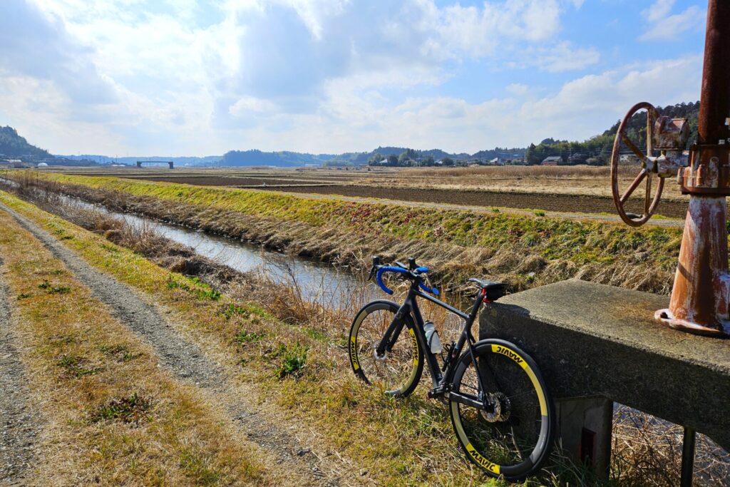 こんな感じのルートです。東に向かってひたすら走り、匝瑳で昼食を楽しみ、食べたら西に向かって帰ります。新調したホイールとタイヤのナラシを兼ねて約100kmを走りました。