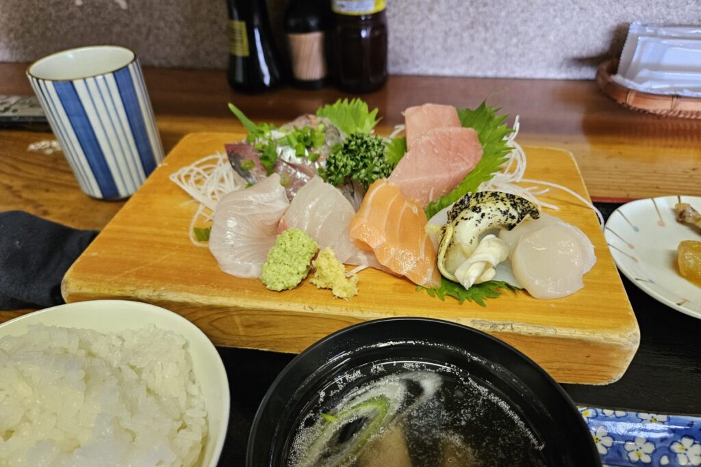 刺身定食をオーダー。新鮮な海の幸を頂きました。屋号のとおり和めるお店でした。ごちそうさまでした。