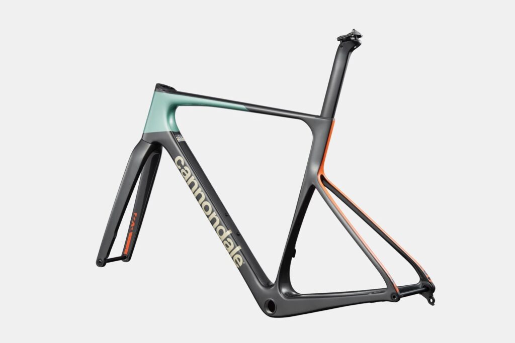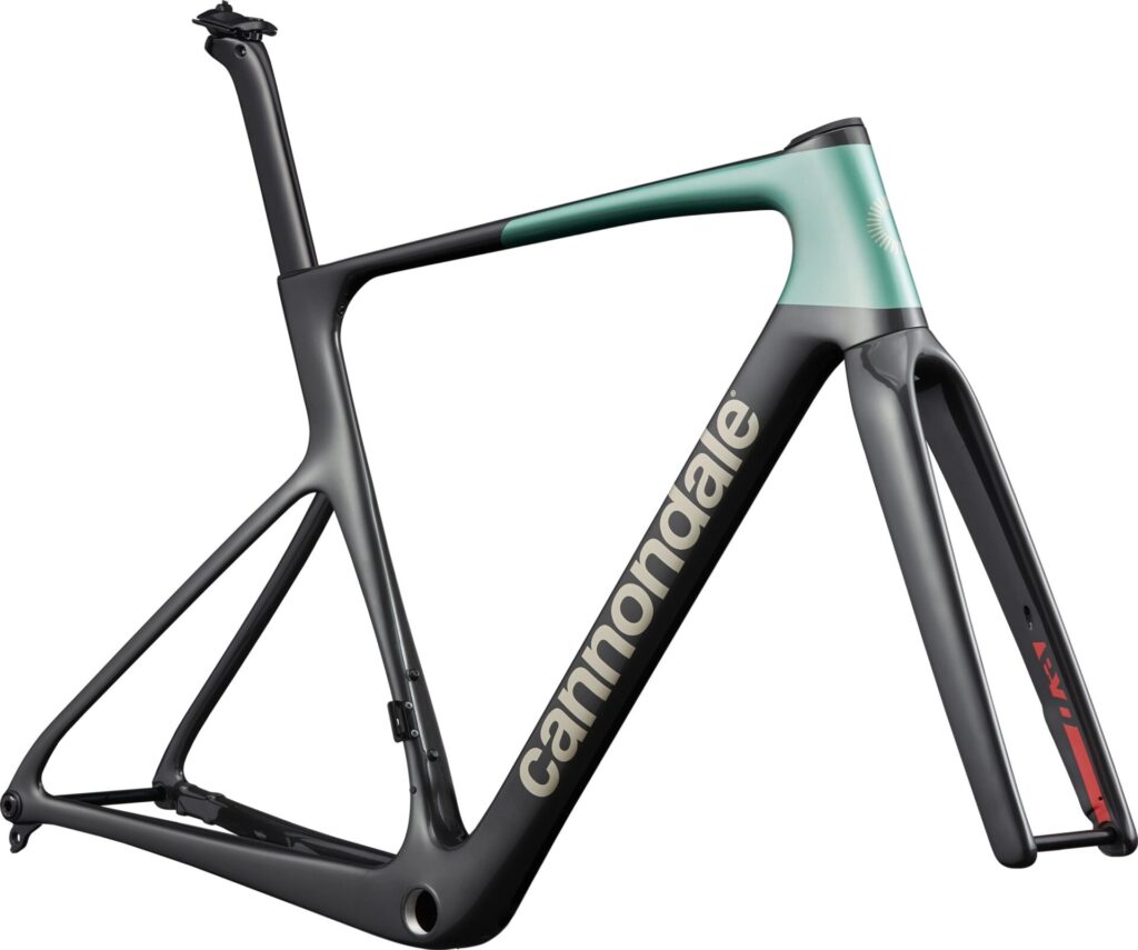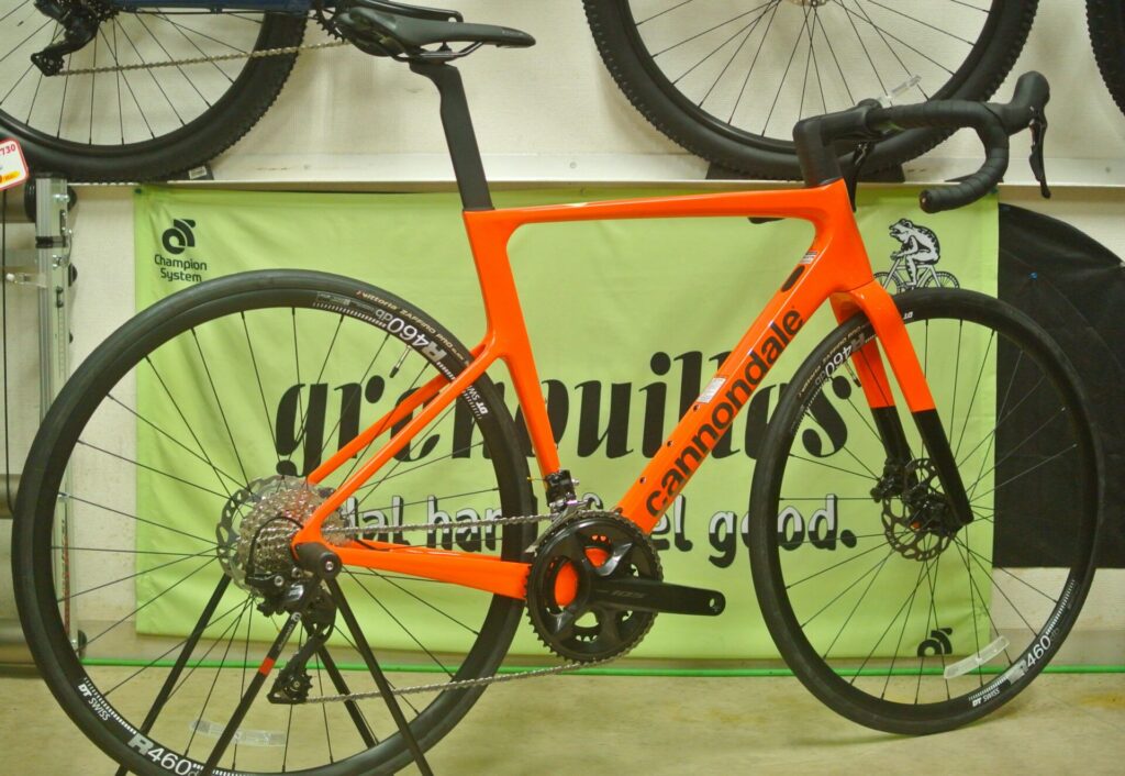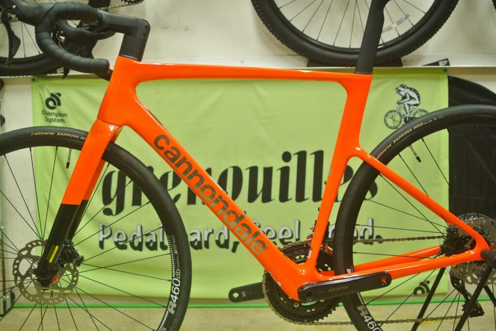 Cannondaleのレーシングバイク「SuperSixEvo」です。2023年に第4世代へ切り替わり、販売面・顧客満足度ともに未だ好調ですが、今期早くもモデルチェンジが掛かりました。第5世代へと進化します。当店にはスタンダードMod(標準グレードのやつ)のフレームセットで入荷しました。