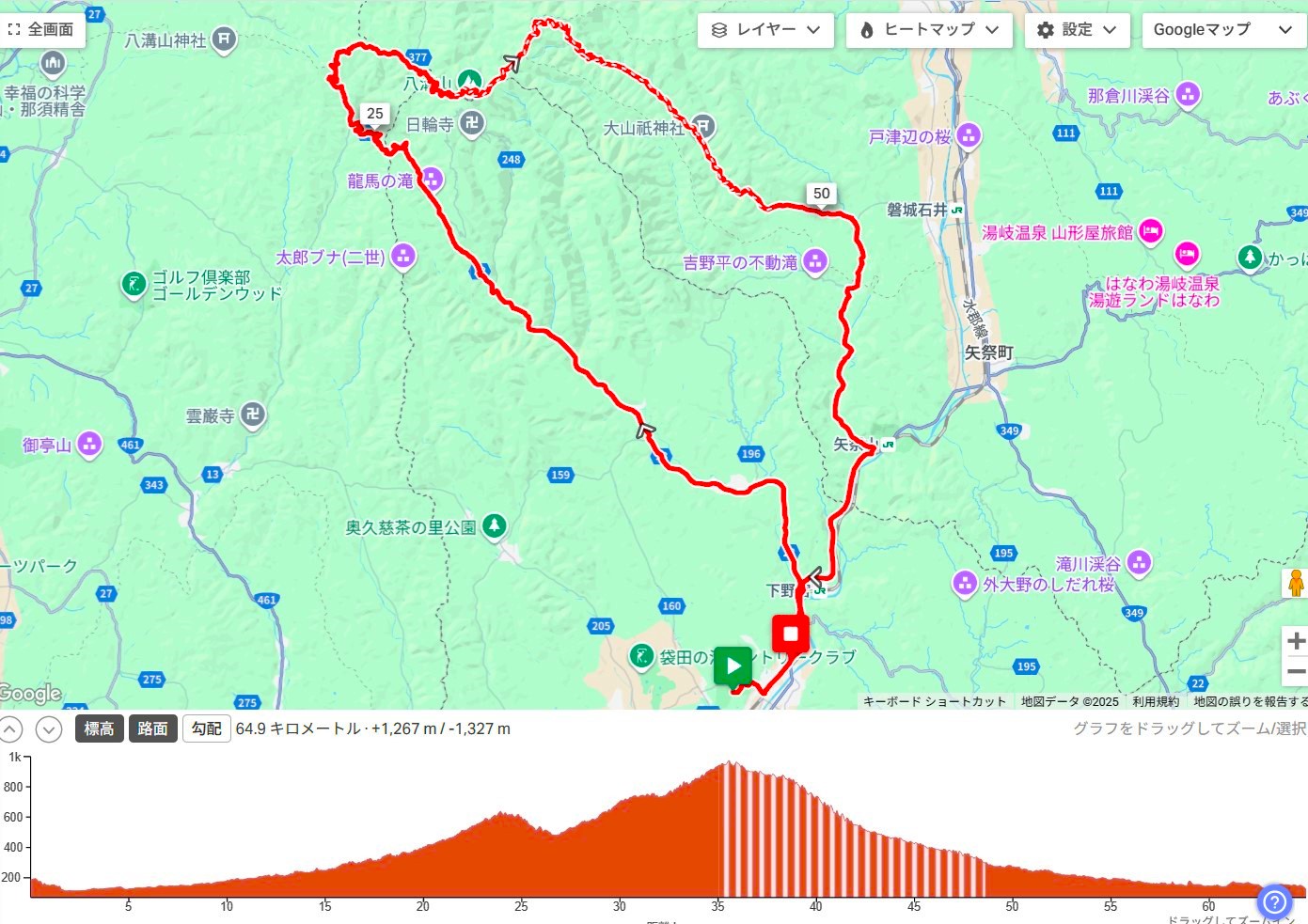 久し振りに八溝山を走ってみたくなり、自分でルートを引いてみました。