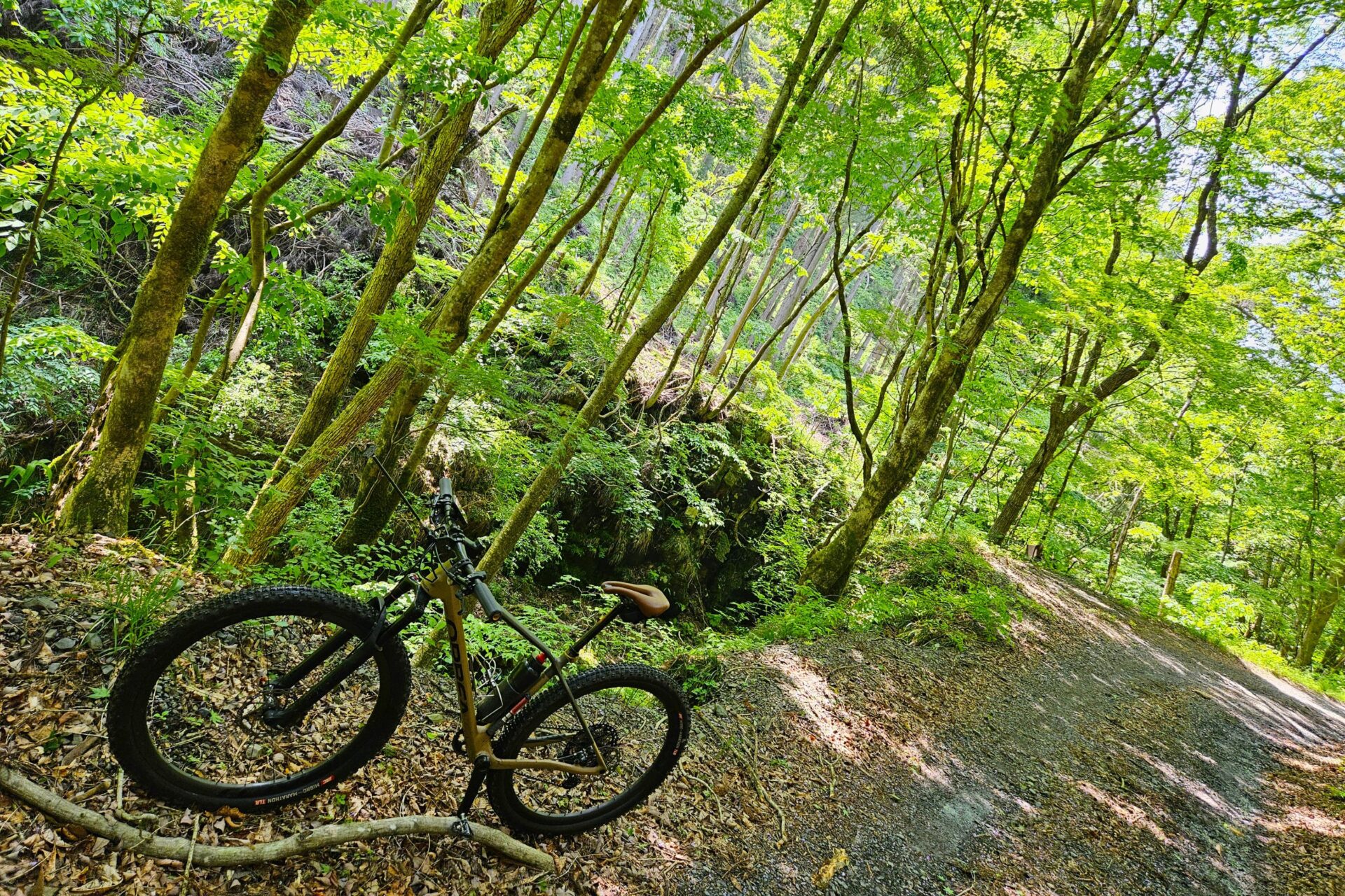 景色の開けた展望ポイントはありません。ずっと写真のような薄暗い森の中を下ります。人の気配が皆無な森の中を何時間も走っているときのゾワッとした雰囲気が好きです。