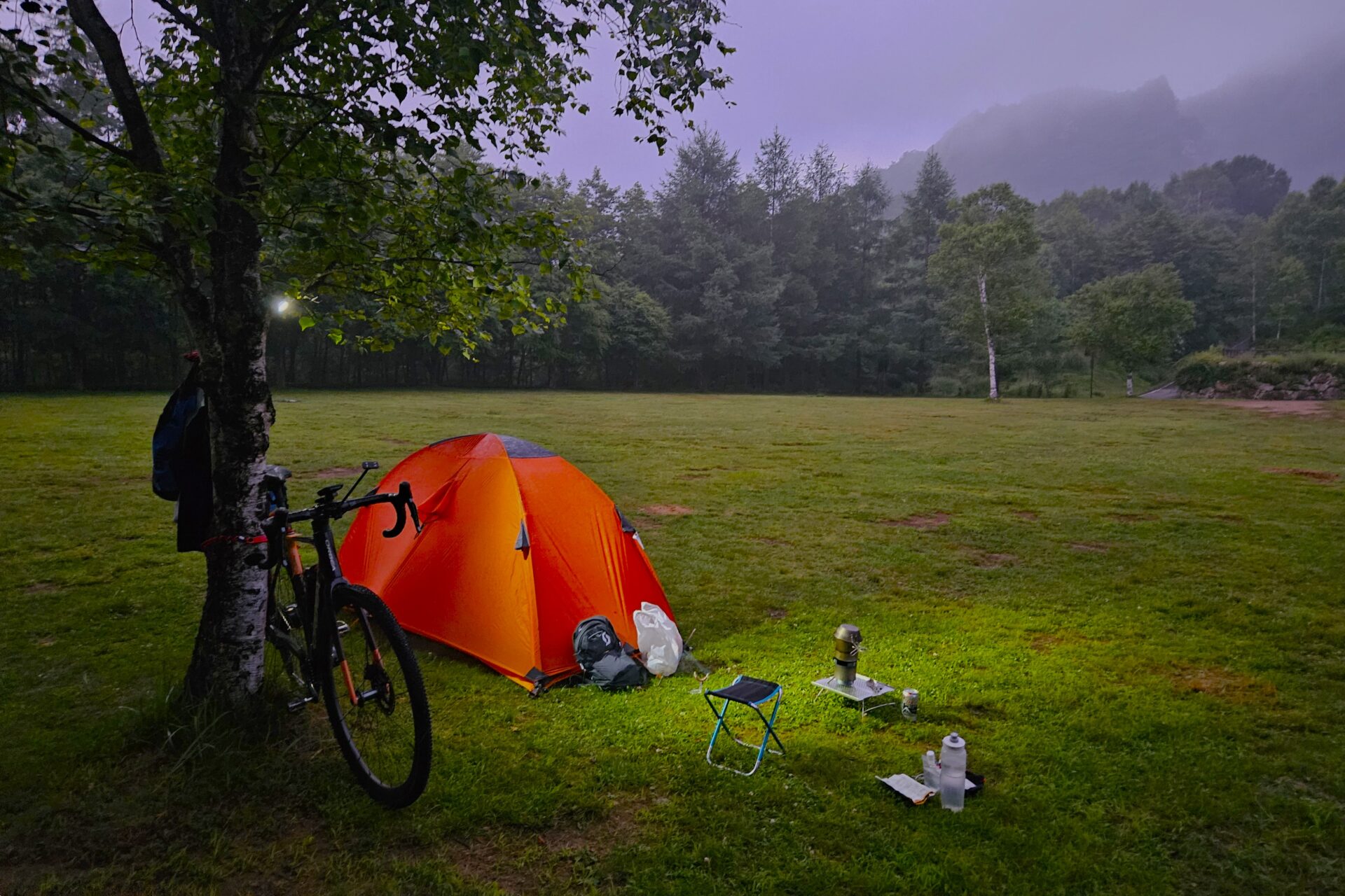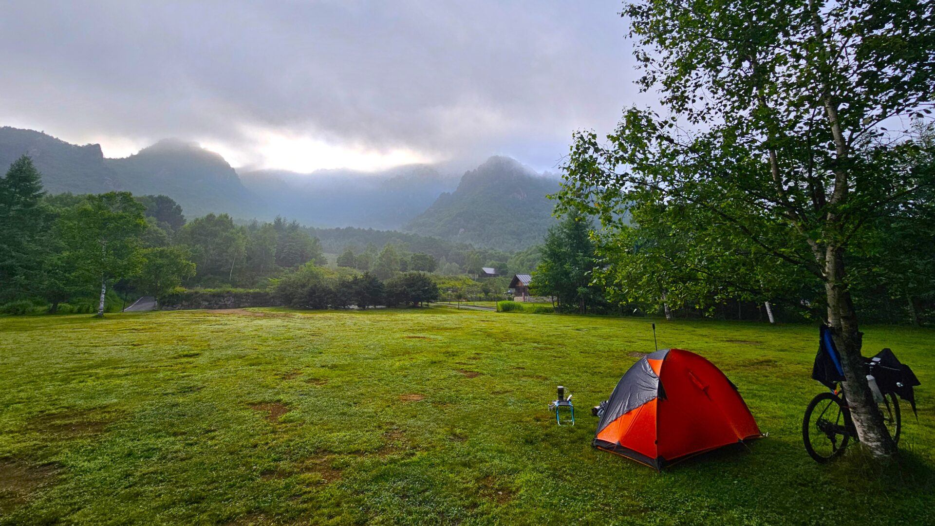 テント内でスマホを見ながら寝転んでいたらポンッ!という音と共にエアマットがスーッと萎んでしまった。このエアマットも7年くらい使ったからしょうがないね。小石の転がっていない快適なキャンプ場なのでマット無しでも寝れました(鹿のウンコは転がってるかもしれないけど)