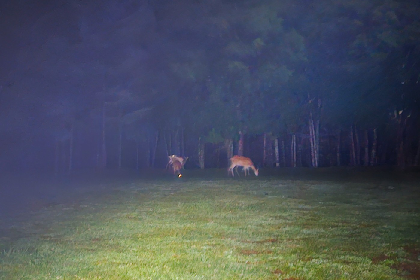 私以外誰もいないテントサイトだと思っていたら人間じゃないのが居た。数十メートル先で数頭の鹿が草をハムハム。このテントサイトは地面のあちこちに鹿のウンコがぽろぽろ落ちていて、うっかりすると踏ん付けちゃう状態でした。