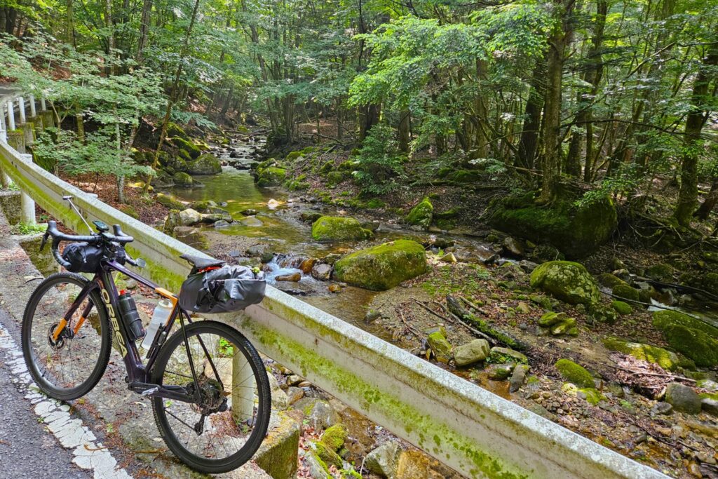 荒川林道の登りではローディ3人組とすれ違いました。この旅で出会った唯一の自転車乗りです。自転車人口、もっと増やさないとなぁ… 自転車、楽しいんだけどなぁ…