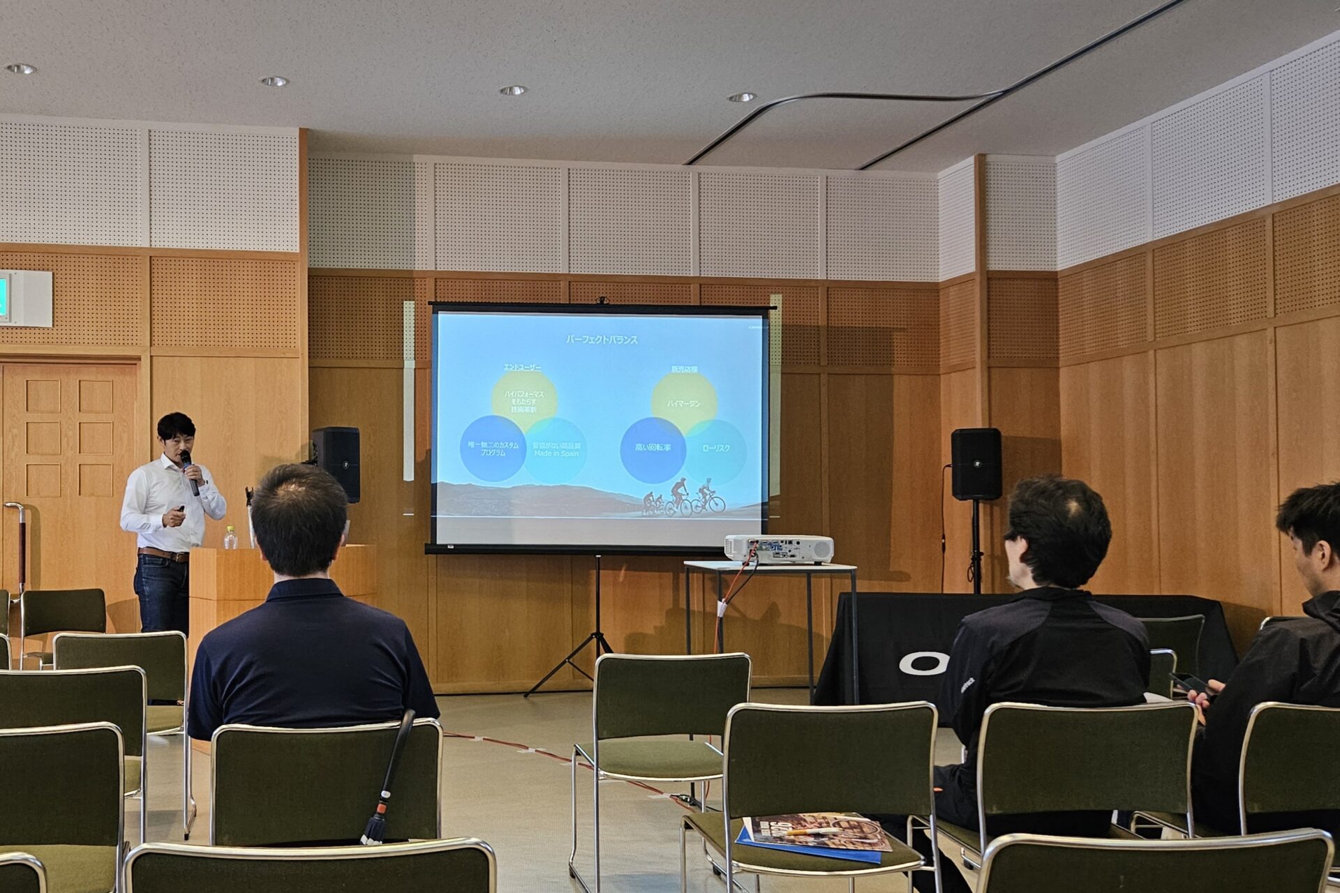 プレゼンでは「オルベア」の今後の経営ヴィジョンを説明してくれました。オルベアは製品の独自性だけでなく、生産・在庫・流通・販売の手法も他社と一線を画すブランドです。顧客満足度の更なる向上と小売店ひとつひとつの成功が大事だ、と力説していました。