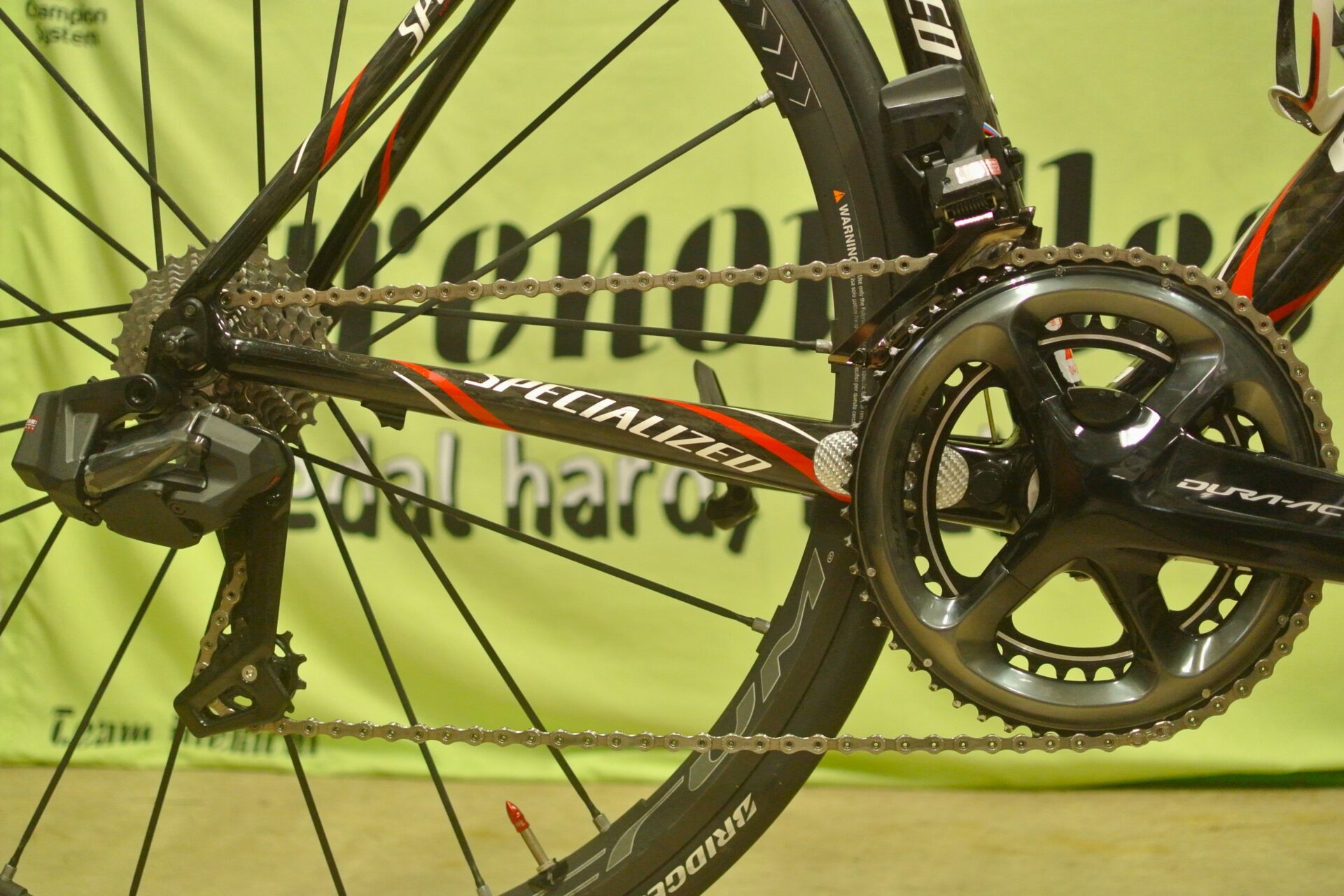 EDSの最大の特徴は「どのメーカーのギアを付けていても、リアスプロケが何段変速でも対応する」という点です。Yさんのターマックではシマノ2×11速ギアを変速させます。