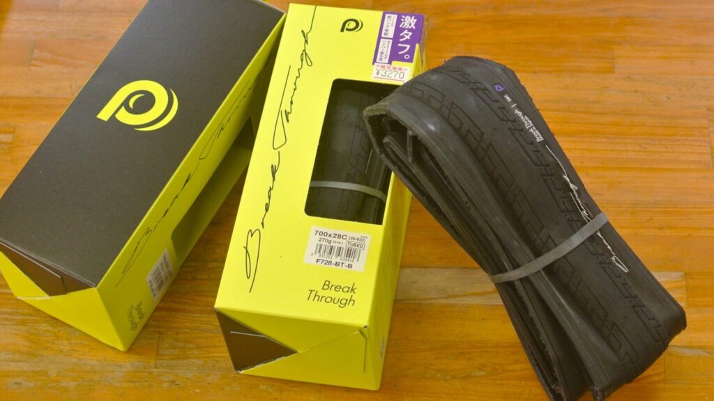Panaracerの「ブレイクスルー」は今月に出荷が始まったばかりの新製品です。25cと28cの2サイズ。このサイズ展開からロードバイク乗りをターゲットに据えたタイヤだと見て取れます。