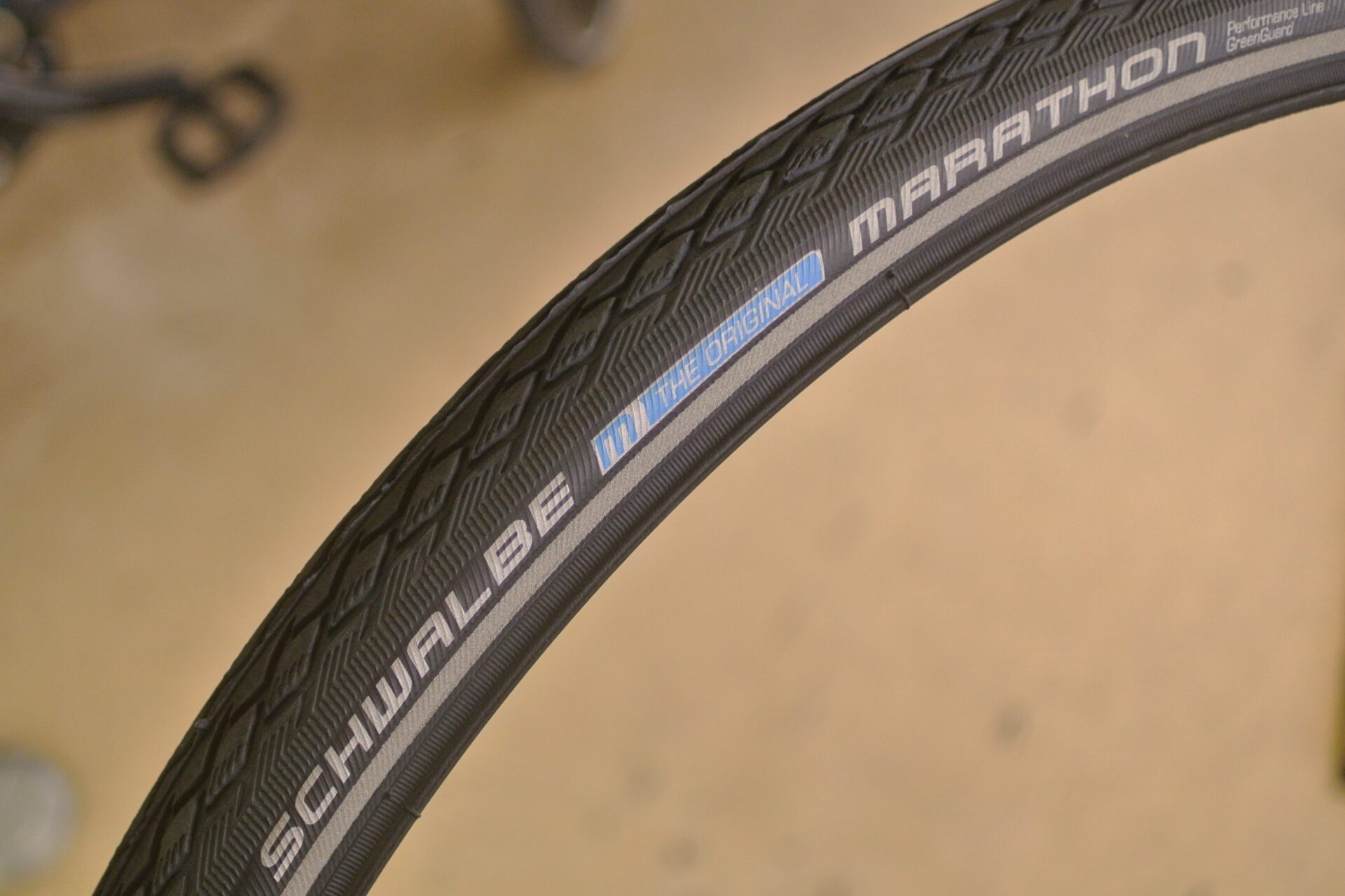 ちなみに、昔から超高耐久ロングツーリングタイヤの代名詞とされている「シュワルベ/マラソン」は重量550g、ワイヤービード、当店価格¥5,020です。