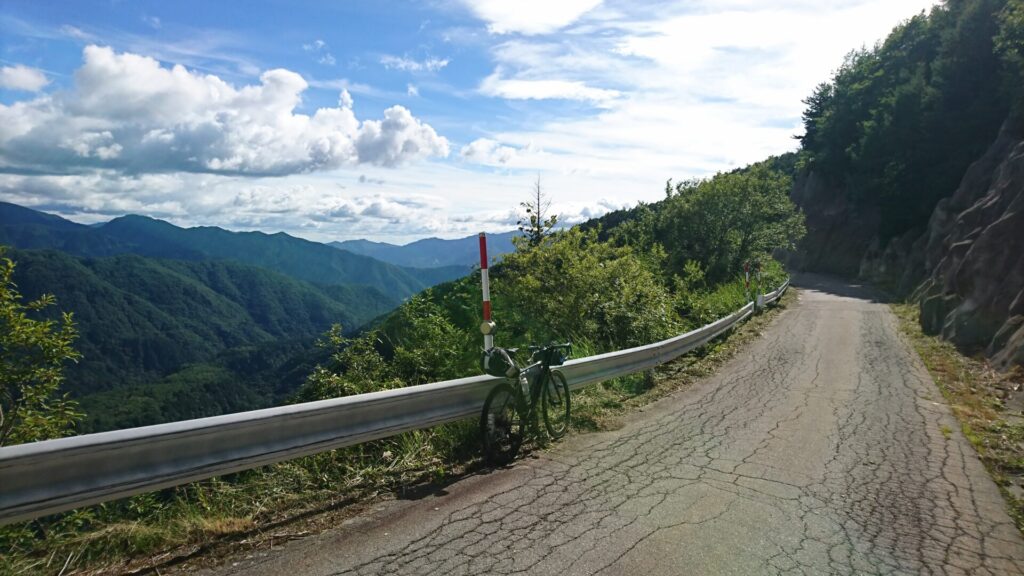 峠を登り切ったら雄大な景色に感動する。下り区間ではスピード感にドキドキしながら下る。タイヤとブレーキと対話しながら下る。砂利道だったりすると尚更嬉しい。景色の良いところでは止まってボーッと休む。たまに登山者とすれ違ったりするとちょっとホッとする。