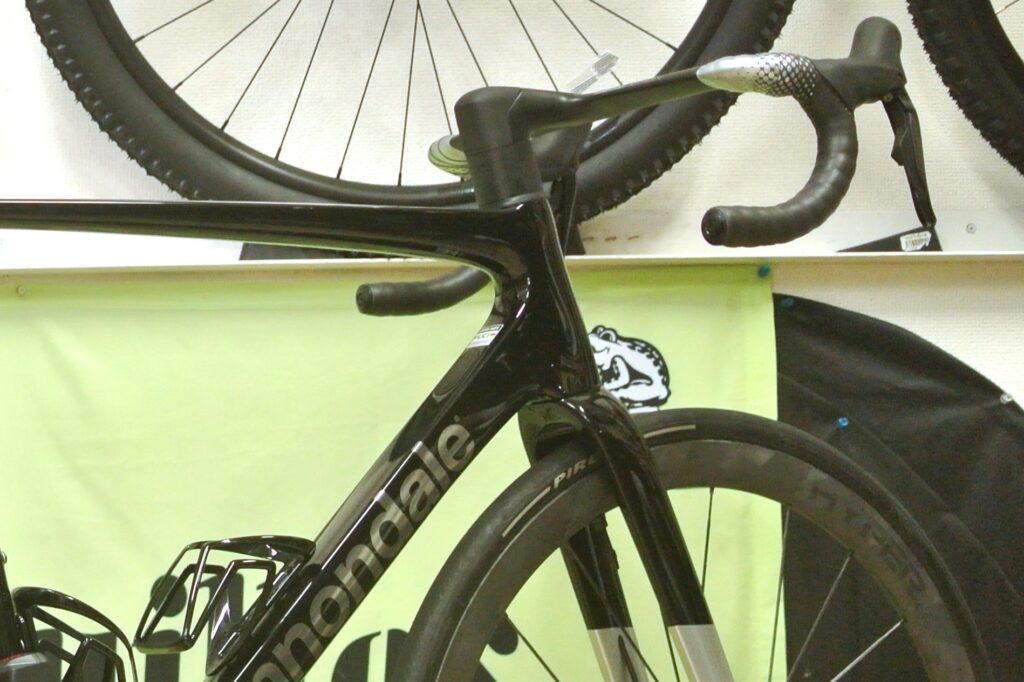 上写真はお客様Mさんの「Cannondale/SuperSixEvo」にmomoデザインのハンドルの組み合わせです。ステムの中までブレーキホースを通す「完全内装」です。これはカッコ良いですね。