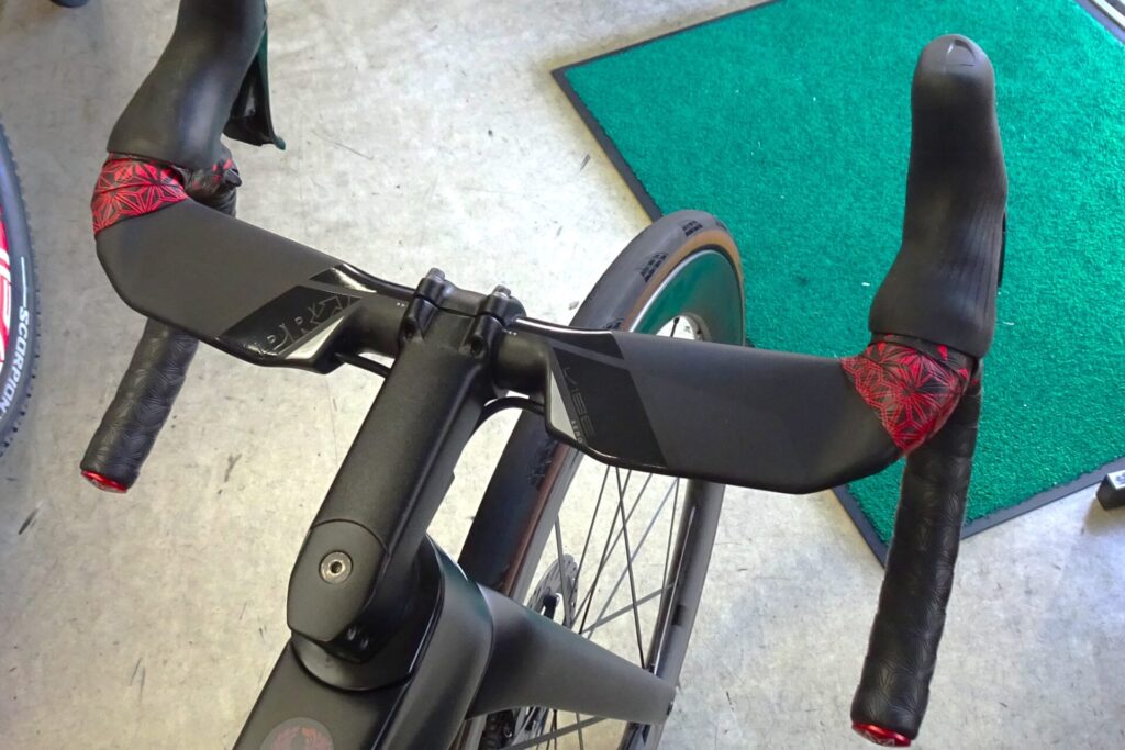 昨日は上写真のバイクを施工しました。お客様Iさんの「ブリヂストン/RP9」に「シマノPRO/VIBEエアロ」のハンドルを組み合わせます。ステムの下にチラッとブレーキホースが見えるだけの「ほぼ完全内装」です。