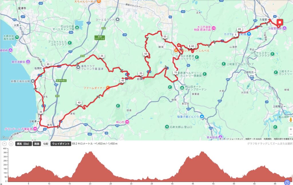 今年は12名で走りました。起点は久留里、途中の難所は鹿野山、目的地は上総湊の「さとみ寿司」さん、お土産のお酒は久留里の「吉崎酒造」さん、という構成。