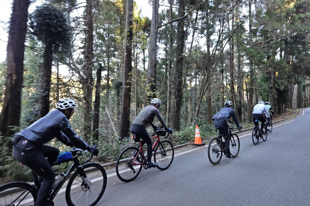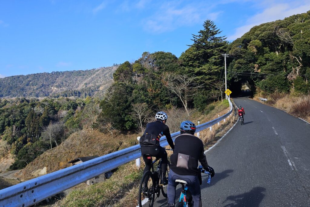 食べたらダルい身体を押して帰ります。久留里を目指して東へ向かいます。R465で山裾を走っていけばいいものを、帰りも鹿野山を越えるんです。これがTeamじて吉のおじさん達です。更和ルートから登り開始。
