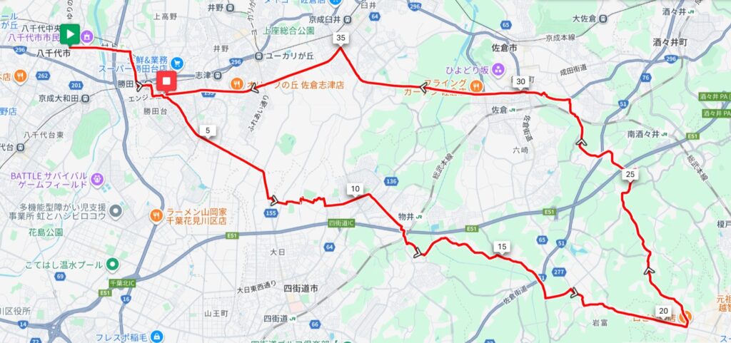 私、「日曜サイクリング」以外で千葉県の道を走るのは4ヶ月ぶりです。夏の酷暑のあいだは頑なに地元ライドを拒否していました。やっと涼しくなったぜ。走り慣れた千葉の道を楽しもう。