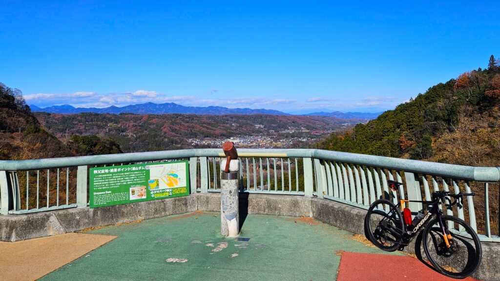 西部秩父線と秩父鉄道を眺めながら秩父の街を抜け、浦山ダムへの登りに入りました。これから登る有馬山稜を見上げます。