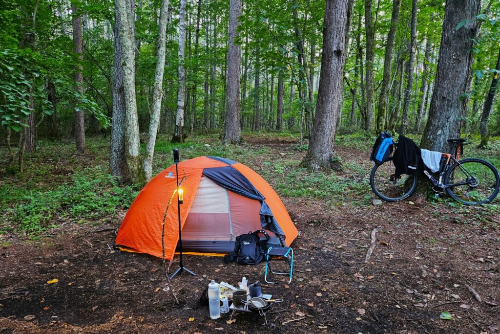 白樺湖のコンビニで買い出ししたら10kmほど北上して「女神の森キャンプ場」へ。