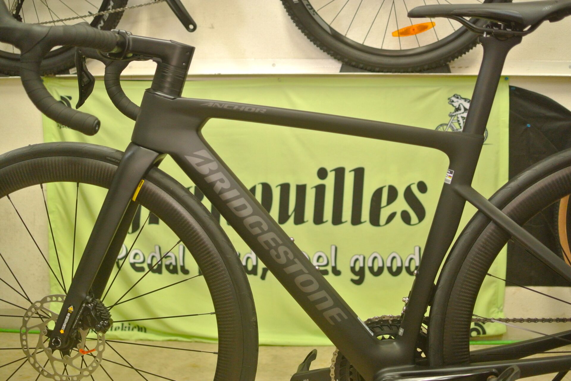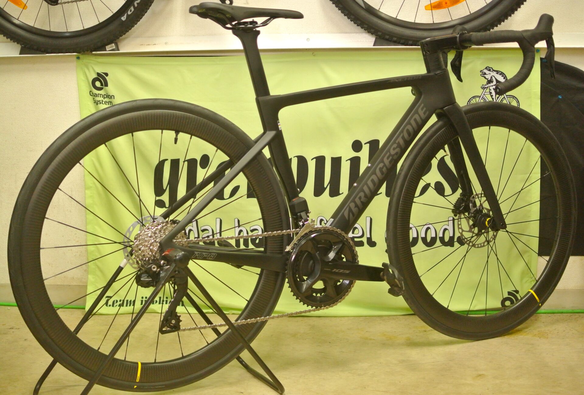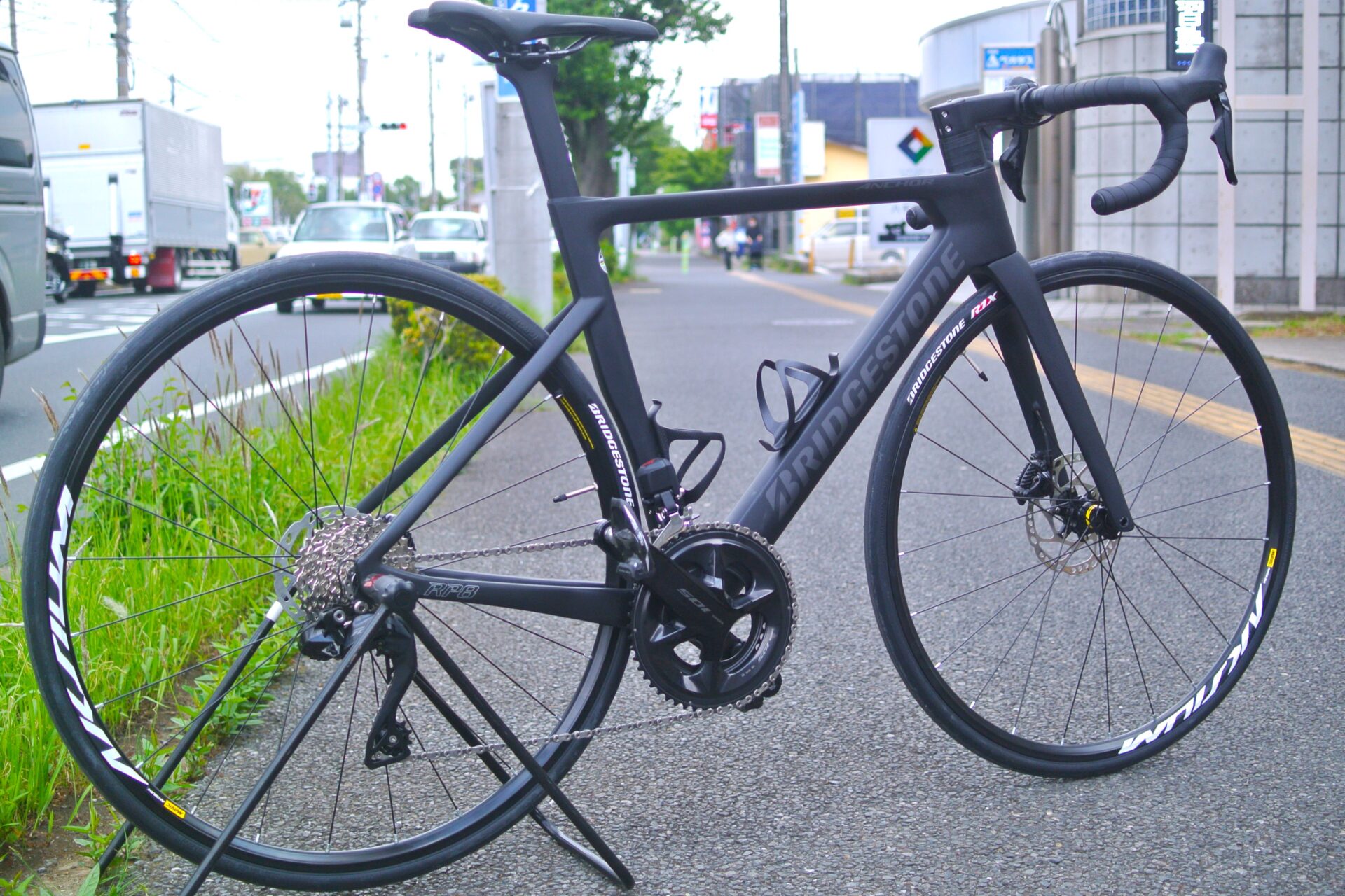 やっぱりディープリムホイールが似合いますね。ブリヂストンアンカー・レーシングラインの凄みが伝わります。