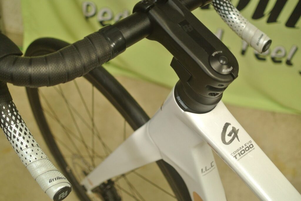 今回入荷した「COBRA Elite」はパールホワイト・Mサイズです。身長166~176cmくらいの方に適合します。車重は写真の状態で実測8.6kgでした。普通に軽い。